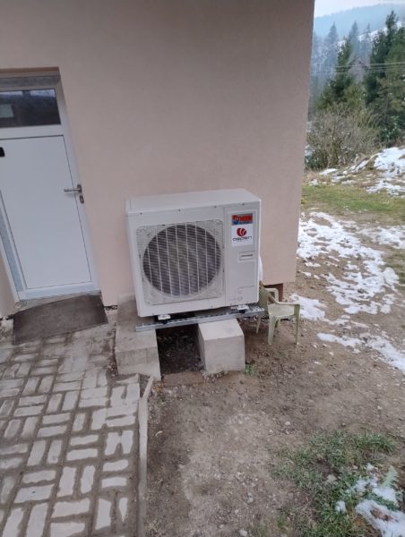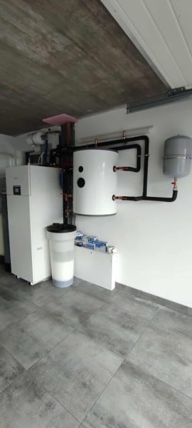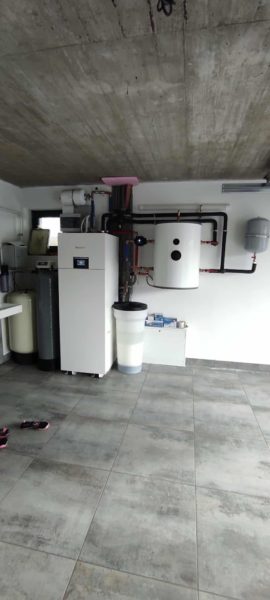 Pri rekonštrukcií staršieho dvojgeneračného rodinného domu kde bolo menené aj radiátorové kúrenie za podlahové, bolo nainštalované tepelne čerpadlo Sinclair 14Kw ktoré bude zabezpečovať dodávky tepla pre celý dom a ohrievať bojler o objeme 300L. Tepelné čerpadlo je v kombinácii s fotovoltikou .