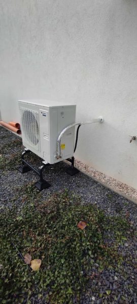 Montáž tepelného čerpadla v obci Hrubá Borša u zákazníka ktorému sme v roku 2020 realizovali montáž klimatizácii v celom rodinnom dome (5 vnútorných jednotiek a dve vonkajšie).