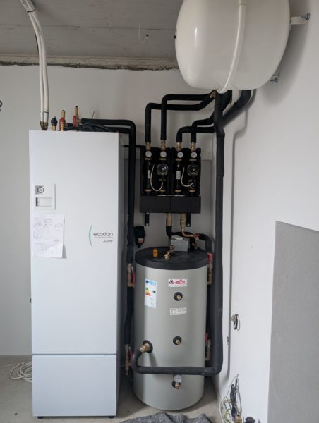 Montáž tepelného čerpadla  Mitsubishi  ECODAN s technológoiu Power Inverter s výkonom 10 kW. Tepelné čerpadlo zabezpečuje celoročné  podlahové vykurovanie rodinného domu a prípravu TUV  v objeme 200 l.