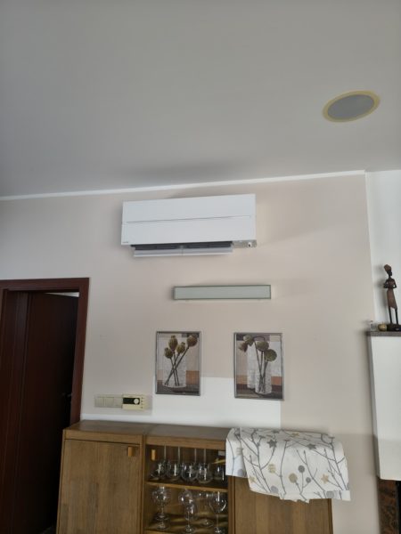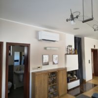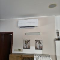 Klimatizácia jednotkami MITSUBISHI model DIAMOND pre obývaciu izbu ako SPLIT 1ks a kazetové 1-cestné jednotky v počte 3ks pripojených k vonkajšej jednotke MULTISPLIT. Klimatizácie komunikujú s inteligentným ovládaním domu, pomocou externých modulov. Inštalovaný výkon 12kW.