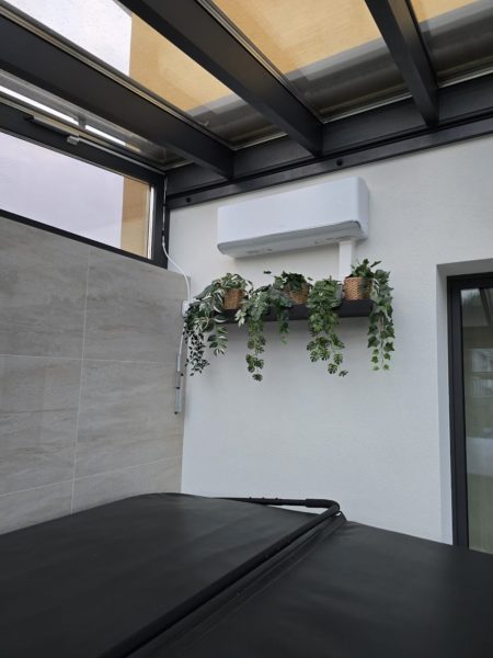 Dôkazom, že klimatizácia je naozaj veľmi dobrá voľba a dá sa použi na chladenie/kúrenie akéhokoľvek priestoru dokazuje montáž do wellnes priestorov rodinného domu v Drážkovciach. Klimatizácia značky GREE FAIRY II. o výkone 5 kW sa bude starať o komfort v zimných mesiacoch, kedy bude zabezpečovať príjemne teplo a zákazník môže namiesto prikladania dreva do piecky venovať čas niečomu zaujímavejšiemu . Naopak v letných horúcich dňoch si hravo poradí s vysokými teplotami a zákazník si môže bezstarostne užívať relax v bazéne