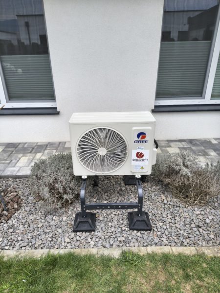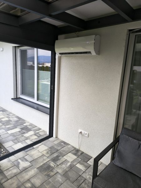 V rámci montáže boli inštalované dve nástenné split klimatizačné jednotky určené na chladenie. Vonkajšie jednotky sú umiestnené tak, aby zabezpečili stabilnú prevádzku a efektívne odvádzanie kondenzátu – jedna na podstavci na balkóne a druhá na konzole na zadnej strane domu.