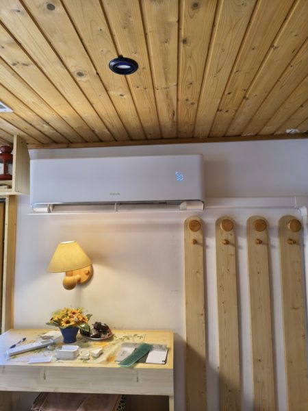 Montáž klimatizácie vo Varíne, jedna sa o drevodom kde chladenie a efektívne kúrenie vrchného a spodného priestoru bude zabezpečovať moderná klimatizácia GREE Clivia 24 ( 7,1 / 7,3 kW ).